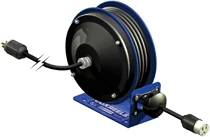 The PC10 Power Cord Reel from Coxreels comes with a 5-foot pigtail and handles up to 30 feet of 16 and 12 gauge cord. It features six different cord accessory options for every power and light management application. Made of heavy gauge steel, this versatile model comes with an integrated drum-style spring motor, unique and durable FDA compliant composite hub and grommet cable guide designed to avoid cable pinching. It mounts to any horizontal or vertical flat surface and weighs only 11 to 19 pounds, depending on the model.