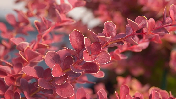 Toscana™ Barberry's large showy foliage emerges red in spring with a fine, bright yellow margin. The margin eventually fades through summer but the foliage remains red. The red color darkens in autumn, taking on burgundy tones. Forms an upright shrub, with arching branches. Bred by Don Selinger, Bailey Nurseries, Inc.