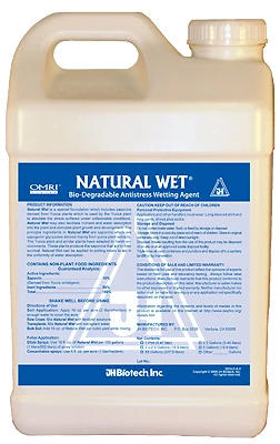 Natural Wet from JH Biotech is a special formulation designed to alleviate the stress that plants suffer under unfavorable conditions. Natural Wet can also facilitate nutrient and water absorption. Adding Natural Wet to the spray tank enhances the spreading and sticking properties of the spray solution. The main ingredients are saponins which are sapogenin glycosides derived mainly from yucca plant extracts. Natural Wet can be applied to potting mixes to aid in the uniformity of water absorption.