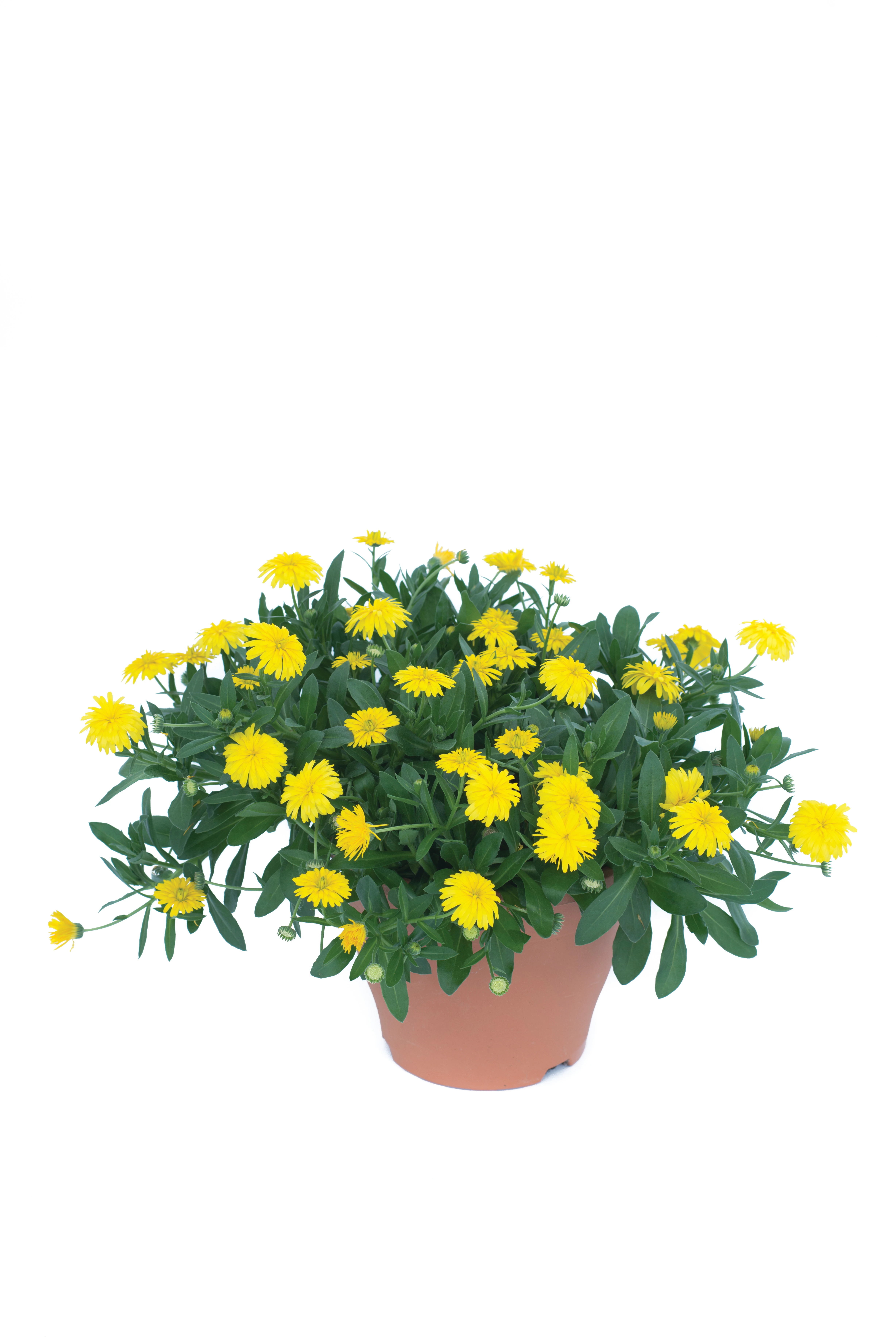 Kientzler’s calendula ‘Power Daisy’ is a compact sterile double flower calendula that is good for baskets, 8-inch or gallon pots. Power Daisy is great as a season opener in cool weather but also extends into retail into early summer. In fact, the breeder likes to consider Power Daisy for fall plantings as well. Produces a bright yellow display in the landscape.