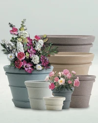 Line of decorative planters that look like stone