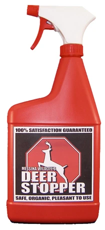 Messina Wildlife’s Deer Stopper products come in a variety of ready-to-use and concentrate sizes, as well as a revolutionary, proprietary pre-tested barrier ribbon. These highly effective products prevent deer, elk and moose from bedding down, rubbing and foraging damage to all shrubs, flowers, edible crops, forest area, fruit trees and turf areas. These pleasant-to-use products all dry clear and order free, and they work by smell, taste and feel.