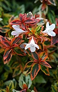 Experience the drama and performance of Abelia ‘Kaleidoscope’, which features both outstanding color and habit. It offers a year-long swirl of color on a dense, compact form boasting the longest blooming of any Abelia. Bred specifically for its leaf color and habit, ‘Kaleidoscope’ features dramatically defined variegation exploding in varying combinations of green, red, yellow and orange throughout the year.