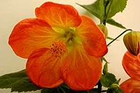 The "Lucky Lantern" Abutilon series from PlantHaven features compact, bushy genetic dwarf abutilons that are excellent for summer containers. The perennial has a longer growing period than the Bella seed-raised series, but this plant still has a short growing cycle (4-6 months) compared with other perennials. The advantage of a vegetatively propagated Abutilon is the long blooming period (near year round in California conditions) with a profusion of bells at all times.