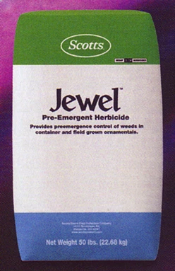 Jewel Pre-Emergent Herbicide from The Scotts Company provides great flexibility in your chemical rotation and is a welcome relief to your budget. Jewel is labeled for many crop species and woody ornamentals, as well as many perennials. Jewel is formulated to provide lasting control with a low application rate (100 lbs/acre).