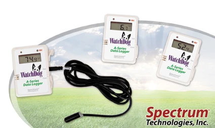 The A-Series Data Loggers from Spectrum Technologies features a 12 month battery life, increased data storage capable of monitoring 83 days at 30 minute intervals, a blinking LED light to indicate the logger is recording and an LCD display of current sensor readings.