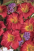 Walters Gardens offers the new Hemerocallis Earlybird Cardinal, which produces 4-inch wide, watermelon red flowers with a pie crust edge and chartreuse throat. It is documented to produce six or more fans per season, compared to 2-3 fans produced on an average daylily. It also tends to produce more than one flower scape per fan, so the plants quickly grow to form a highly floriferous, robust clump.