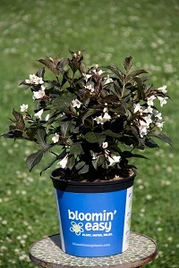 With a striking contrast of true-white bell-shaped flowers against dark foliage, Weigela Tuxedo™ adds a classy elegance to your landscape. The strongest grower in its class with a compact form and loaded with flowers. It's a product of the top Weigela breeding program in the world, and an exceptional performer for grower and end-consumer alike. Because it's low-mounding, compact and showy, plant your Tuxedo at the front of a bed or along a walkway for dramatic effect. Hardy to zone 4 (-34C/-30F). Just plant, water, and relax - it's Bloomin' Easy! Available for shipping in young plants and retail-ready container sizes for Spring 2016. For more: www.vanbelle.com