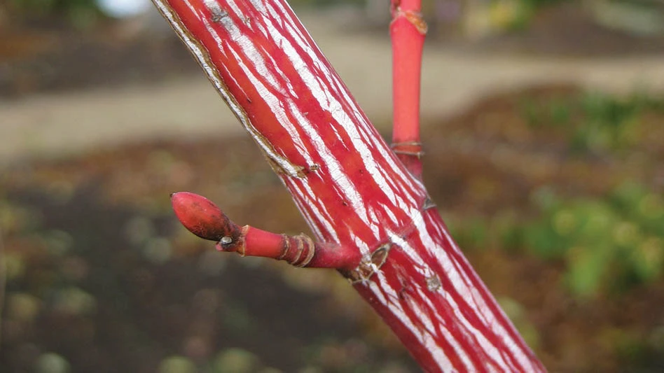 Coral red stems and bark provide winter appeal on this understory tree.